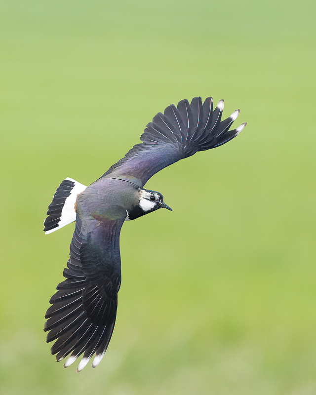 Die Balzflüge sind schwierig fotografisch festzuhalten, da insbesondere die Sturzflugphasen, aber auch Richtungsänderungen recht erratisch auftreten. Am erfolgversprechendsten ist es, einen entfernten Vogel zu wählen, und mit Autofokus auf „AF-C tracking“ dem Vogel im Sucher konstant zu folgen und dabei zu hoffen, dass er sich auf fototaugliche Distanz nähert. Die Verwendung der Back button – Methode hilft dabei, so dass nur in attraktiven Fluglagen der Auslöser (auf hoher Bildfrequenz ) betätigt werden muss. Erst auf den Fotografien der Übergangsphase in den Sturzflug fiel mir auf, dass sich der Kiebitz auf den Rücken dreht, den Kopf um 180° rotiert und dann „abtaucht“. Unglaublich, mir war nur von den Eulen diese hohe Beweglichkeit der Nackenwirbelsäule bekannt.