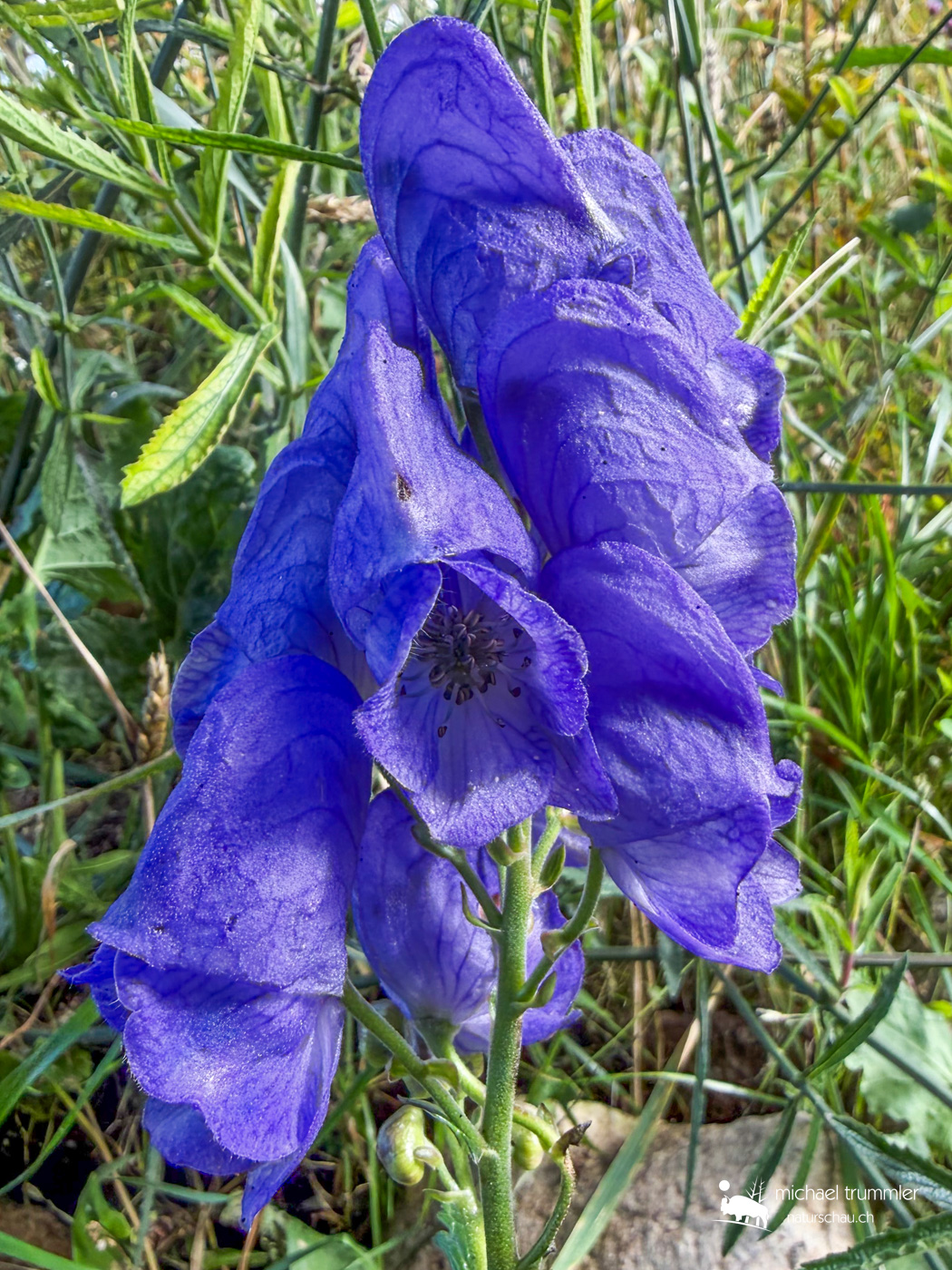 Gemäss Wikipedia wurde der Blaue Eisenhut früher als Lieferant von Pfeilgift genutzt, zudem sollen Hexen eine sinneserweiternde Hexensalbe daraus hergestellt haben. Alle Pflanzenteile sind giftig. Im deutschsprachigen Raum gebräuchliche Trivialnamen für den blauen Eisenhut reichen von Apollonienwurzel über Gifthut bis zum Ziegentod.